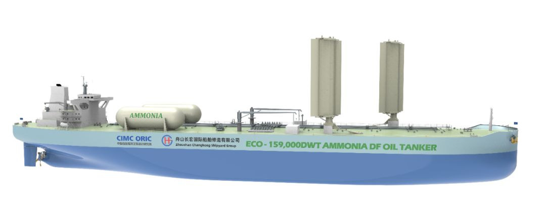 The ECO-159,000 DWT ammonia dual-fuel crude oil tanker is designed as a next-generation green Suezmax solution for long-haul crude oil transport. Based on a technical pathway combining zero-carbon fuel and wind-assisted propulsion, the design integrates advanced propulsion systems, intelligent control, and an optimized hull form. The vessel is equipped with a latest-generation ammonia-fueled main engine and two large Type C ammonia fuel tanks arranged on the main deck, targeting ultra-low to zero well-to-wake emissions. Fuel system arrangements are developed in line with the IGF Code and relevant classification guidelines to ensure safe application.